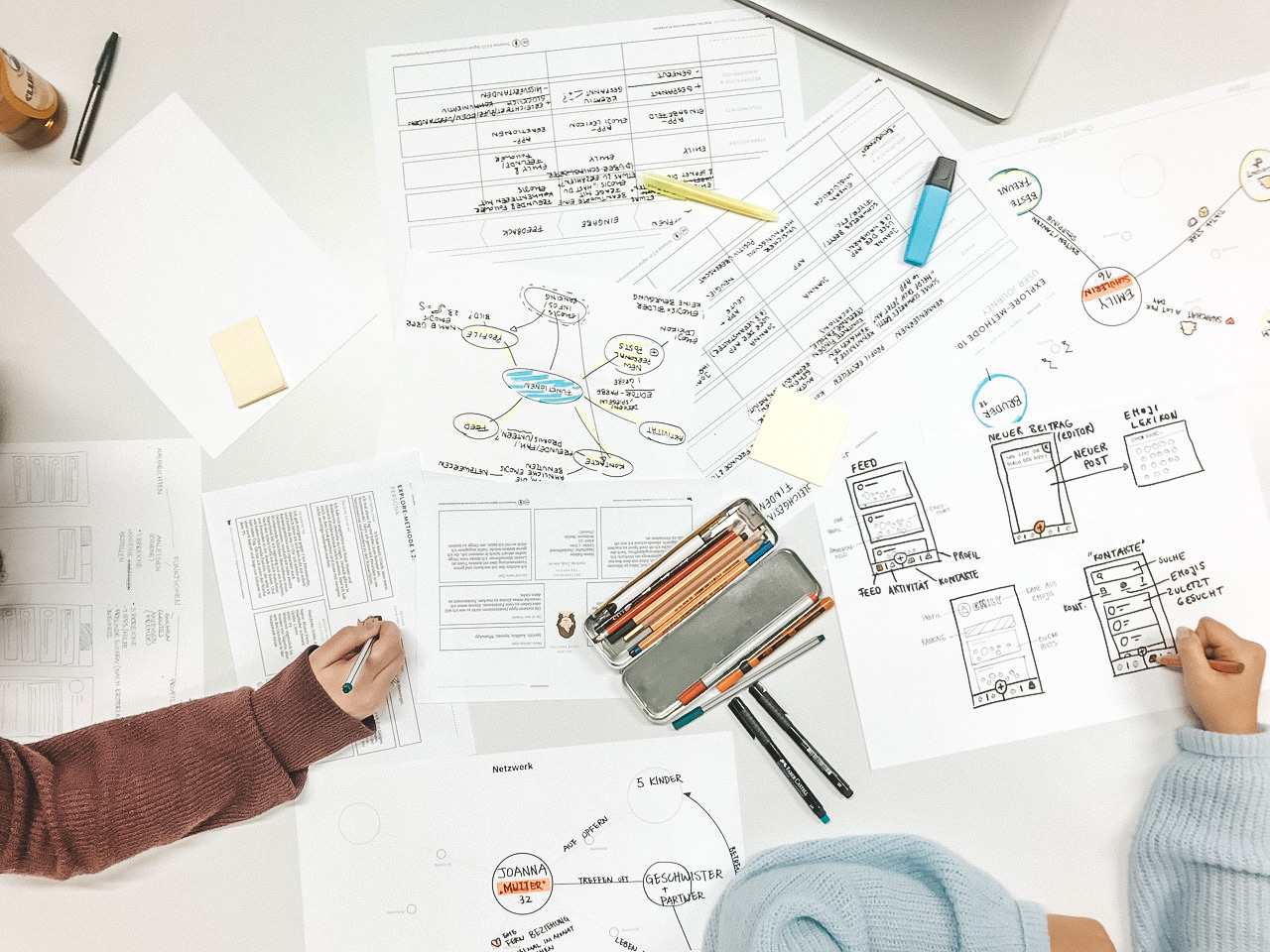 For innovative idea creation, we participated in a workshop at the beginning of the course where we worked on different personas and their relationships as well as their attitude towards social media platforms. During the discussions, we came up with the thought experiment of designing a radical communication solution instead of another standard network.